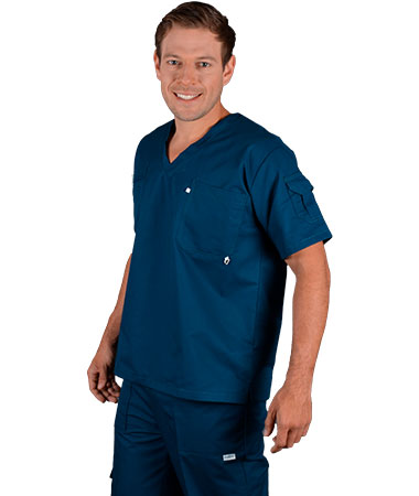 Blusa manga corta, corte imperio, con 2 bolsas dobles utilitarias, pantalón de elástico, jareta de cintura, 1 bolsa lateral, bolsas delanteras y 1 bolsa trasera.